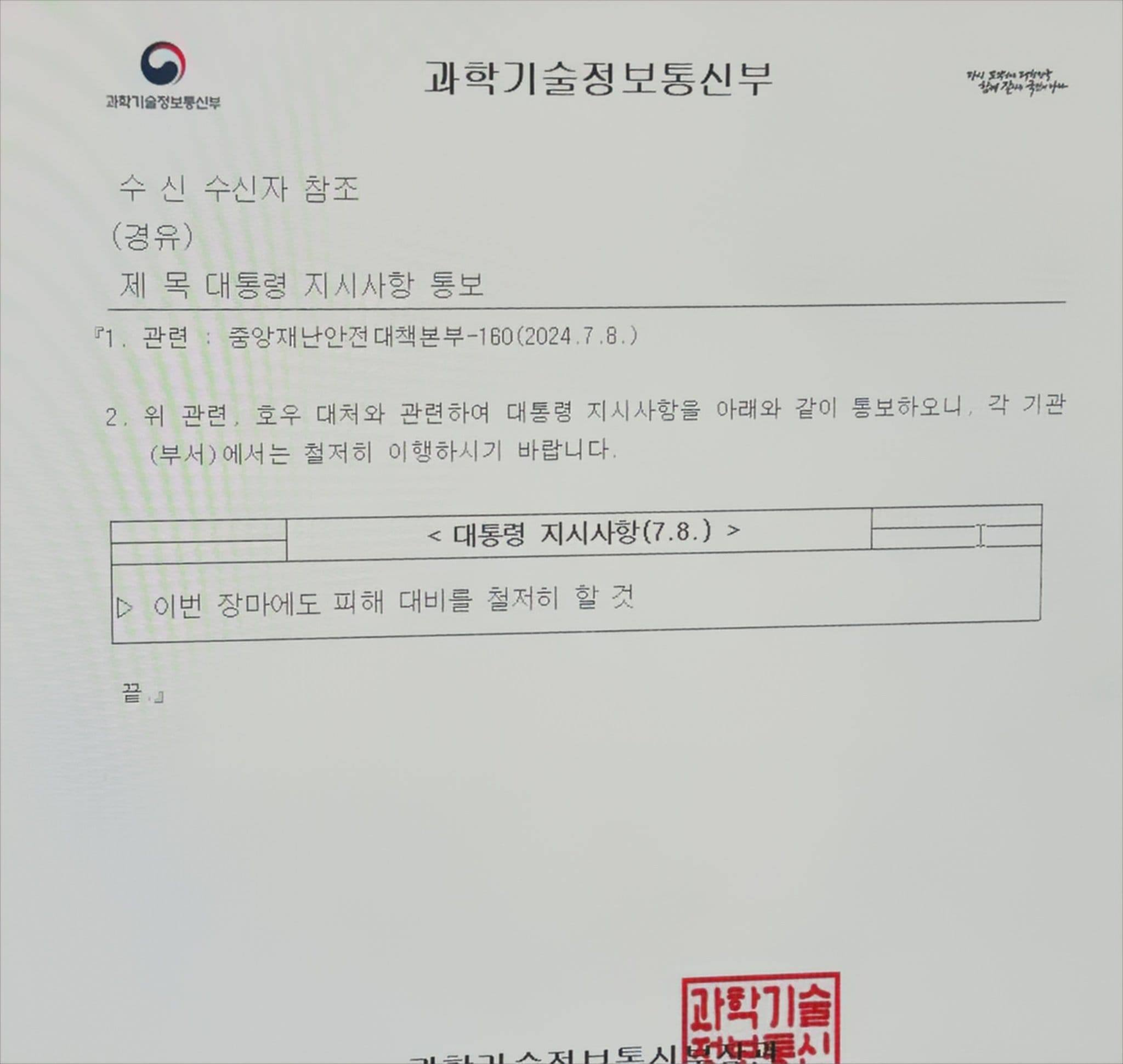 코메디도 아니고 이러한 공문이 각 정부 부처를 통해 내려갔다고 하는데 이렇게 행정력을 뽐낼정도로 우리나라가 선진국이 된 것 같아 뿌듯하고 자랑스럽습니다. 참고로 이번 장마에도 피해 대비를 철저히 할 것은 16글자라고 합니다. 농담으로 여러 사람 입에 오르내리더라도 정말 호우에 피해없도록 각별한 주의가 필요하겠습니다.