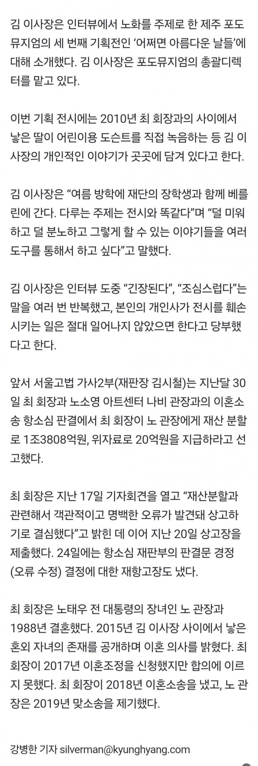 최태원 동거인 “궁금한 모든 것, 이야기할 때가 올 것”