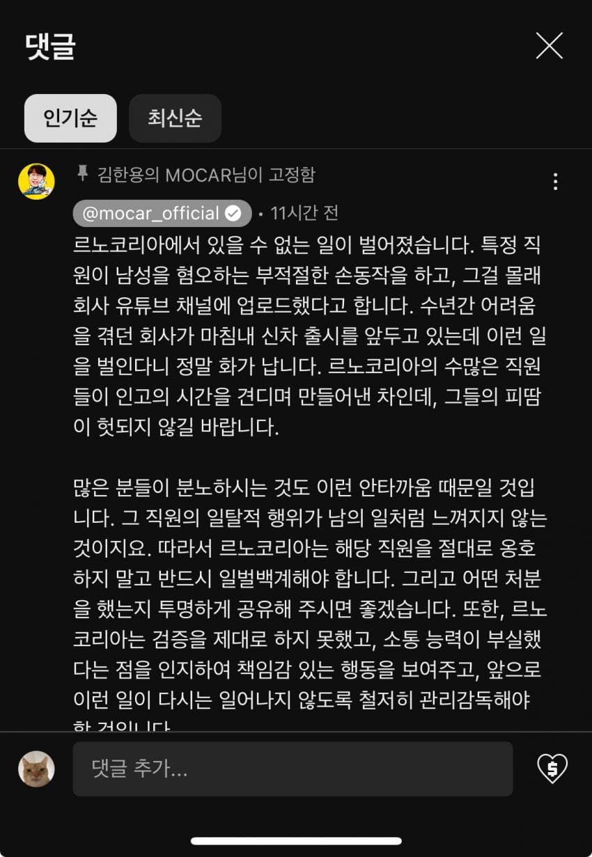 르노인사이드의 영상 파문이 커지고 있는 중에 다양한 반응을 모아봅니다.