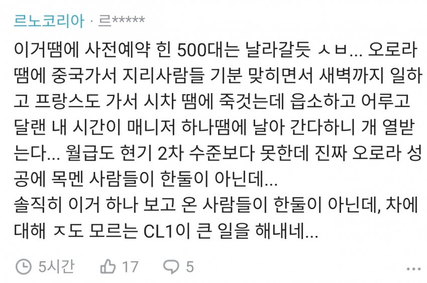 르노코리아 직원 : 해외출장 빡세게 다녔는데....